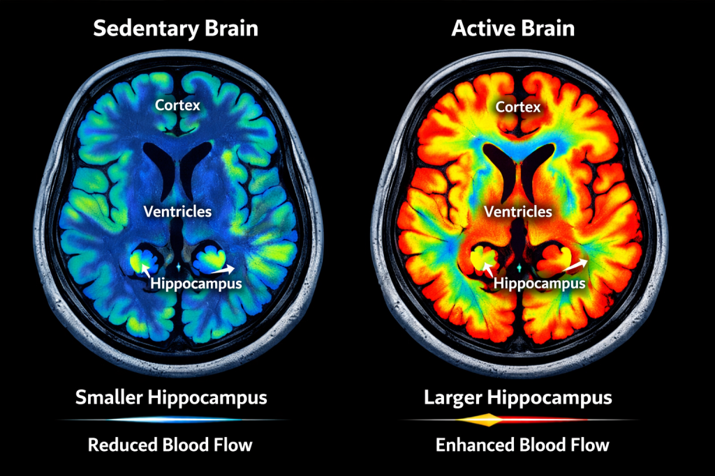 Exercise is one of the most powerful interventions for brain health. It increases BDNF (brain-derived neurotrophic factor) by over 300%, improves cerebral blood flow by 30%+, reduces inflammation, and can even increase hippocampal volume over time.